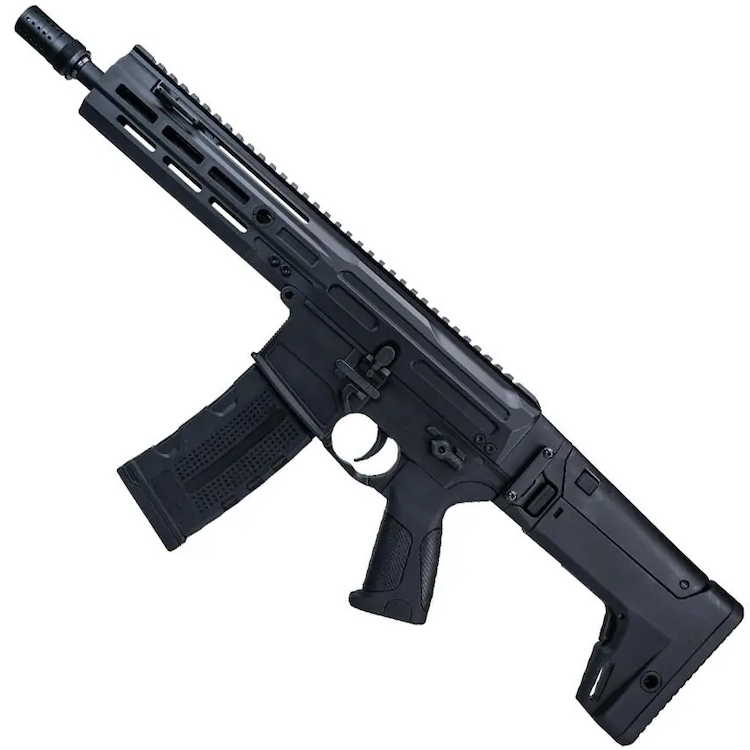 Le FLCN 5.56 est équipé d'une détente électronique programmable avec capteur optique qui surveille également l'état du réducteur et le niveau de la batterie. Le réducteur à roulements de 8 mm est équipé d'un ressort à changement rapide permettant de changer la vitesse initiale de la vitesse intérieure à la vitesse extérieure et inversement en moins d'une minute. Un hop-up rotatif assure des réglages précis et des tirs réguliers. Le FLCN 5.56 est câblé pour une connexion Deans/T-Plug, mais est également fourni avec un adaptateur mini-Tamiya, et la batterie est logée dans la crosse.