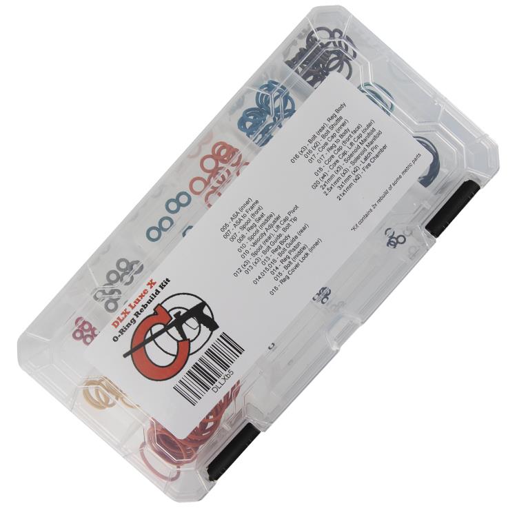Grand kit de joints toriques Captain coloré pour la réparation des modèles de marqueurs DLX Luxe X avec suffisamment de joints pour réparer complètement le marqueur 5 fois.