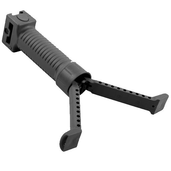 Poignée avant fiable avec bipied intégré pour montage sous le canon ou sous le corps du marqueur. La poignée peut être fixée à n'importe quel rail Weaver standard de 20 mm.