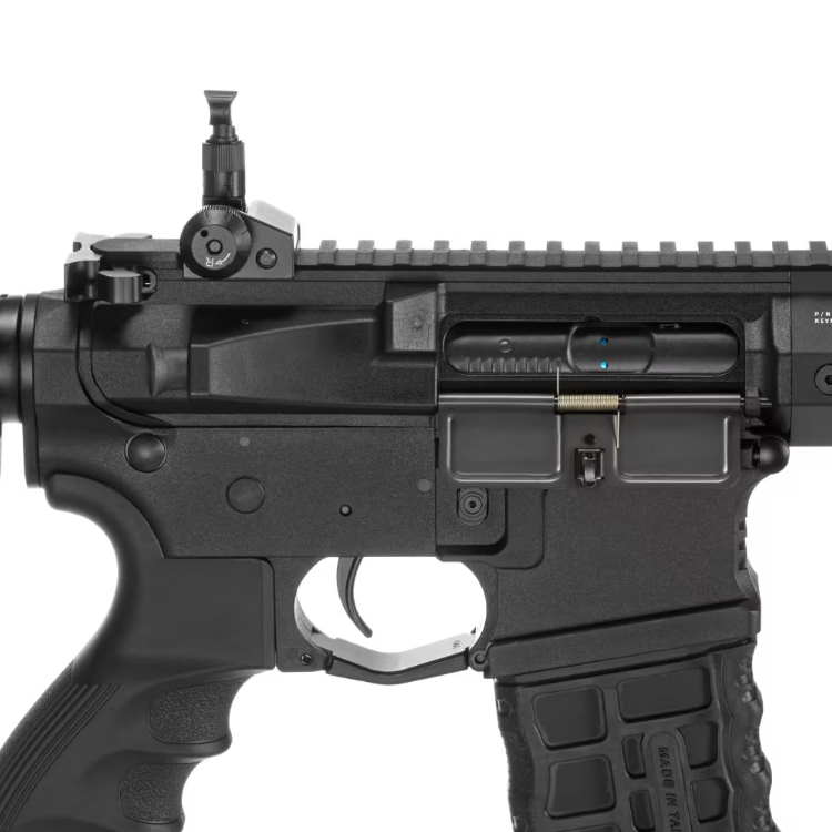 Cette réplique est dotée d'un nouveau système de détente à micro-interrupteur avec MOSFET. Similaire à un ASCU, il offre désormais les avantages d'un système à micro-interrupteur. Le MOSFET, situé à l'extérieur de la gearbox, est compatible avec les batteries LiPo. Seules des batteries de haute qualité, spécialement conçues pour l'airsoft, doivent être utilisées.
