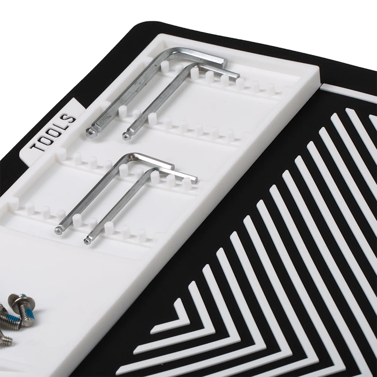 Le plateau à outils rainuré, le plateau magnétique pour les pièces et le rebord surélevé empêchent les petites pièces comme les vis, les ressorts ou les billes de rouler et de tomber de la surface de travail. Le logo en relief maintient fermement votre marqueur sans le rayer, assurant ainsi un espace de travail stable et sûr.