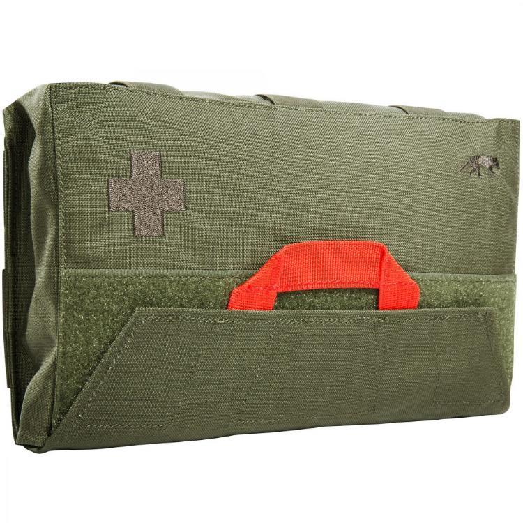 Trousse de secours avec système d'accès rapide. Le panneau avec des boucles équipées individuellement peut être retiré avec une poignée.
