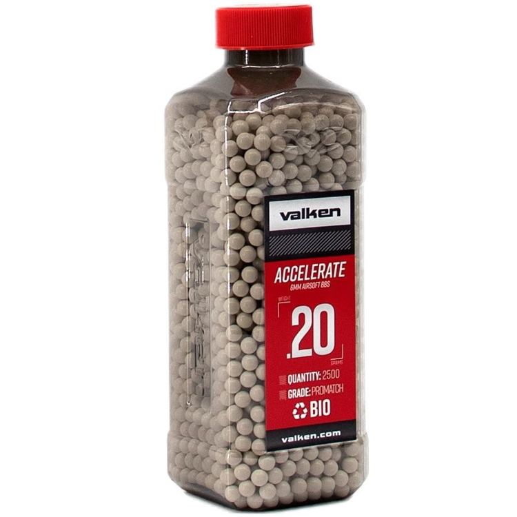 Billes bio Valken Accelerate Airsoft 0,20 g en flacon (2 500 pièces)