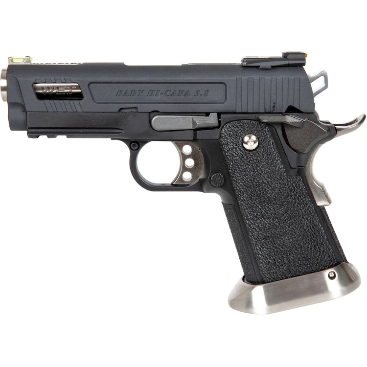La construction extérieure est presque entièrement en métal ; seule la poignée est en plastique. WE fournit des composants internes de haute qualité qui garantissent une longue durée de vie et la précision de chaque tir. Associé au canon interne métallique intégré, le Hi-Capa 3.8 Force offre une excellente cadence de tir et une puissance allant jusqu'à 0,8 joule avec 0,20 bille.